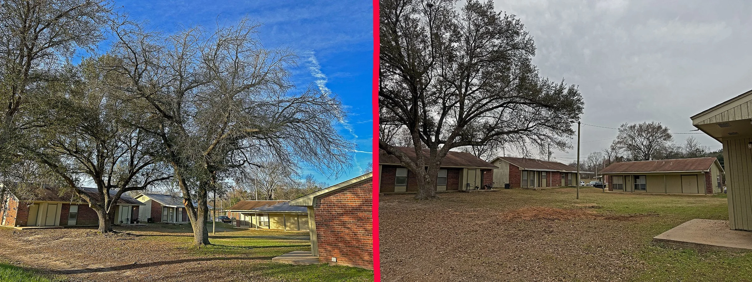 Before and After Dead Pecan Tree Removal.