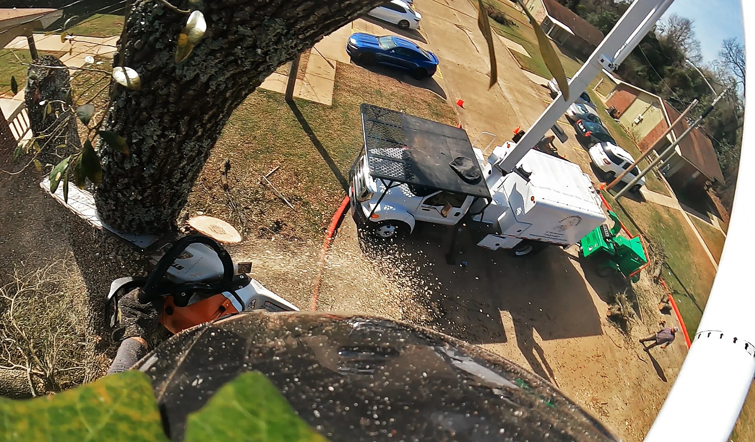 We use lifts as well as climb for full tree removal.